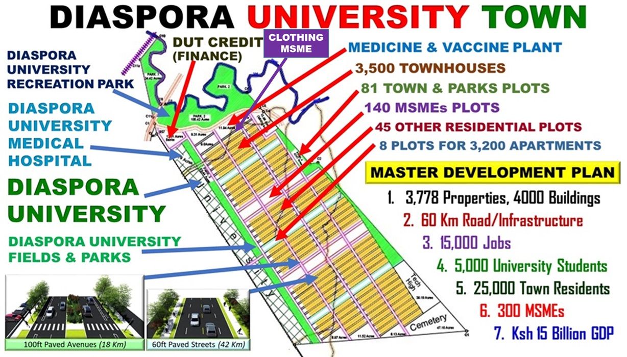 Dan Kamau, the DUT Project Director, when thanking Ann, whom he came to know after she joined in 2015, said, “The first year orders of clothing wear by DUT-Town departments and MSMEs setting up at DUT will be over 20,000 units. Another 5,000 units will be branded Diaspora University clothing wear. The MSME can produce 30,000 units in the first year, and all units will be sold in the DUT plan.”