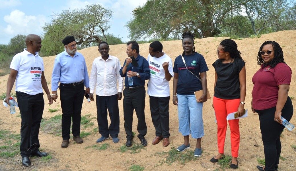 The Diaspora University Town (DUT) sign board at the Voi - Taveta roadside reads, “By Diaspora Kenyans, Ndara B Community & Partners.” Dan Kamau, the DUT Project Director, presented the project partnership opportunities to Comply Industries, a producer and supplier of timber products; Bamburi Cement; Sicaa Construction Company; and owners of micro and small businesses in Voi who visited DUT. He outlined four budgets that will increase the revenue of companies that become DUT partners.