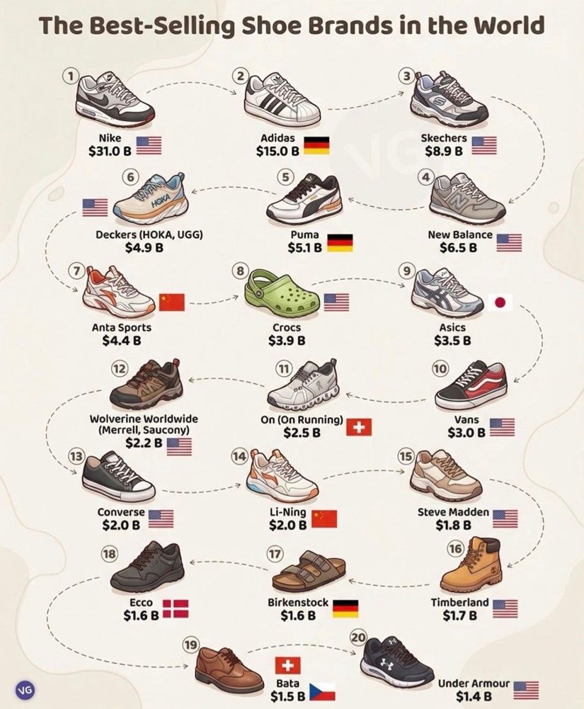 The U.S. footwear market in 2025 was expected to generate approximately US$103 billion in revenue. It is projected to grow by 4.93% through 2030. The market was strong, with a consumption rate of 5.67 pairs per person. This calculates to about 1.5 billion shoes produced and sold in the 340 million U.S population.