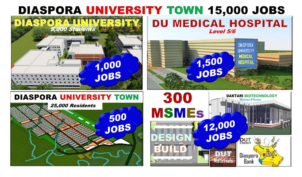 The DUT project will create 20,000 Jobs, develop a 25,000-resident town with the residents living in the planned 3,500 Townhouses, 3,200 Apartments, and other Residential units. About Micro Small & Medium Enterprises (MSMEs) and Organizations will be open. The project will grow Kenya's GDP by 20 billion, create new wealth of about Ksh 200 billion, and grow the banking sector by Ksh 70 billion.