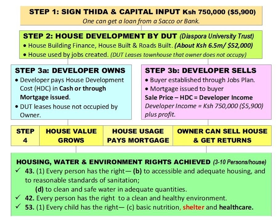 Sign a DUT Townhouse Investment and Development Agreement (THIDA) https://dut.or.ke/THIDA2025.pdf and put in the Ksh 750,000 cash.